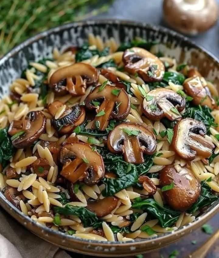20-Minute Spinach Mushroom Orzo – A Light & Earthy Pasta Dish