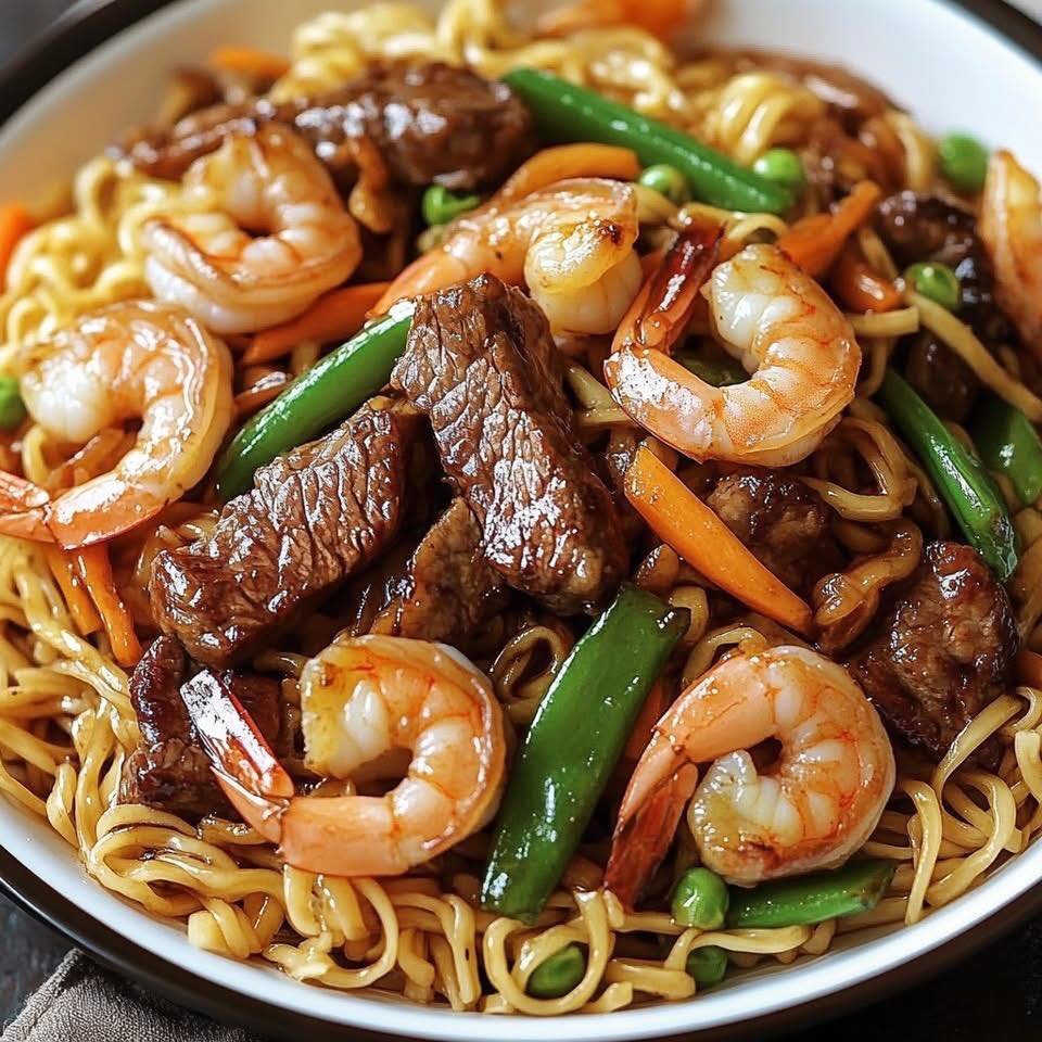 Sizzling Steak & Shrimp Stir-Fry with Noodles