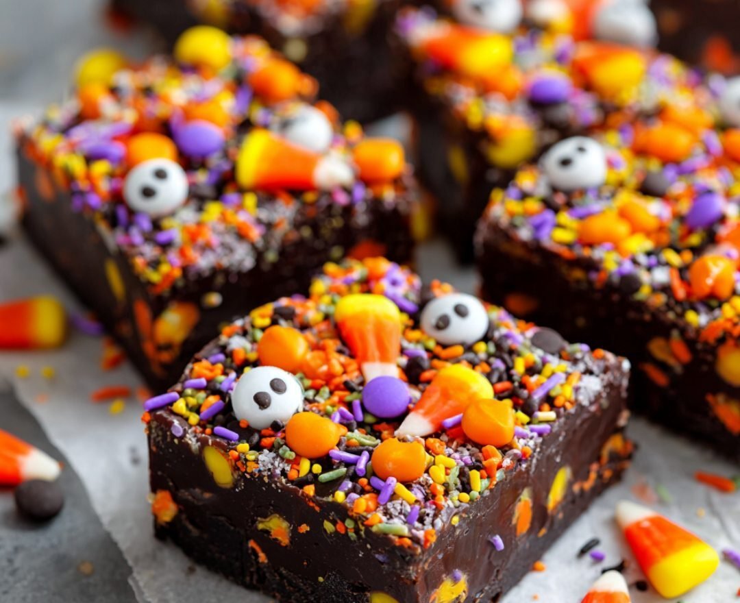The chocolate fudge is just the starting point. This recipe is a blank slate for all your favorite spooky toppings. I use candy corn and Halloween sprinkles for maximum color, but you can raid your trick-or-treat haul and use chopped fun-size candy bars, crushed cookies, or anything else you’ve got on hand. It turns a simple dessert into a festive showstopperfor any party.