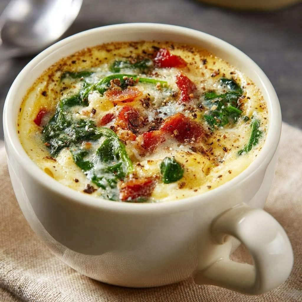 It’s fluffy, satisfying, protein-packed, and ready before your coffee even finishes brewing. No skillet. No oven. No cleanup disaster. Just one mug and a microwave.