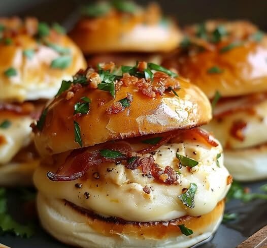 In a bowl, mix shredded chicken, chopped bacon, cheddar cheese, and ranch dressing until well combined. - Assemble the Sliders