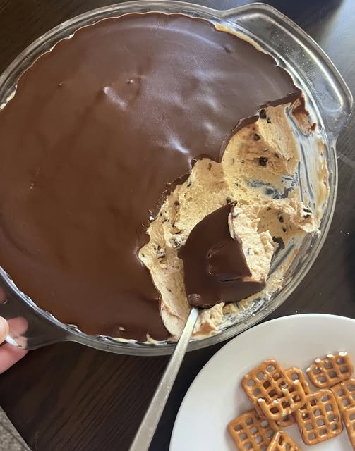 - Spread the Peanut Butter: Spread the peanut butter mixture evenly into a shallow pie plate or a serving dish.