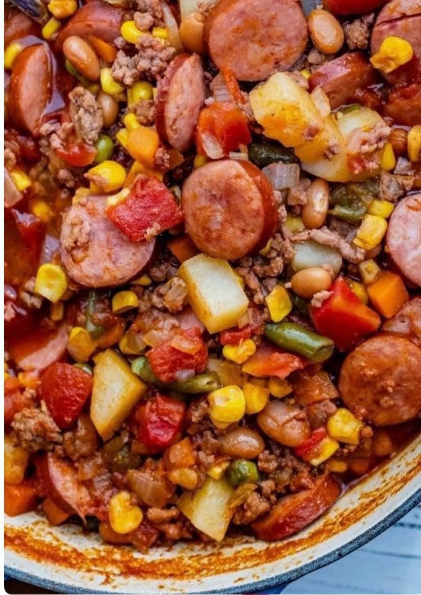 • Three Meats for Maximum Flavor: We use ground beefsausage, and kielbasa, each adding a different layer of texture and smokiness. This combination is non-negotiable for that true “cowboy” flavor.