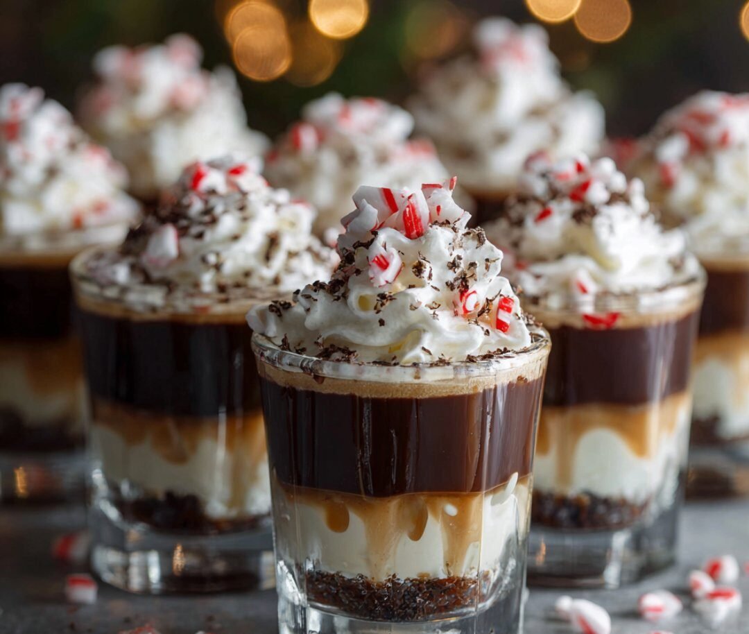 - Garnish and Serve: Just before serving, top each shot with a dollop of fresh whipped cream and your choice of garnish—crushed candy canes for a festive look, or elegant chocolate shavings.
