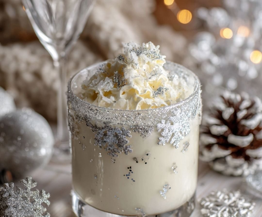 This cocktail is designed to be the centerpiece of any winter gathering, whether you’re hosting a festive Christmas party, toasting to the New Year, or just enjoying a cozy night in. It blends the warmth of vanilla vodka, the sweetness of white chocolate, and a luxurious touch of coconut cream, all crowned with an elegant, edible silver sparkle.