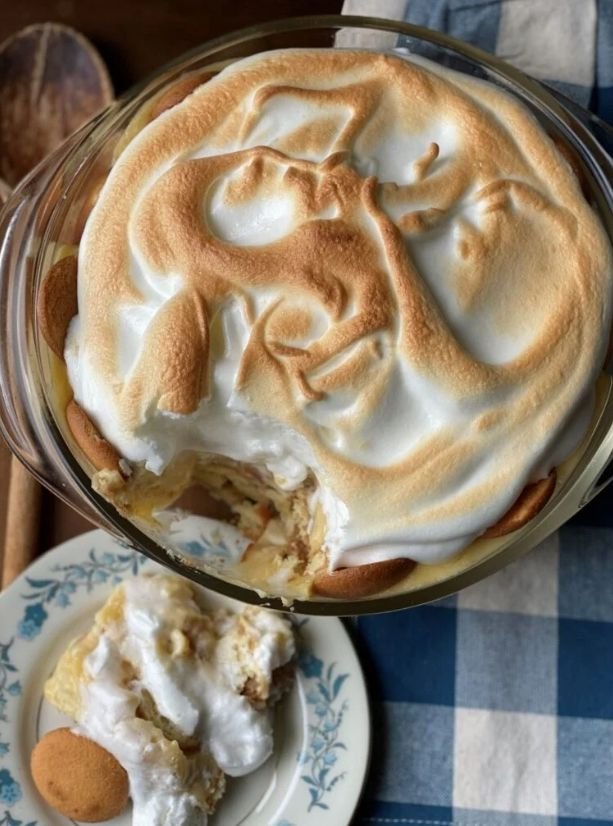 What makes this version so special is that it is made the traditional way, with a cooked custard-style pudding rather than instant mix. That extra step gives it a richer flavor and a softer, creamier texture that makes the whole dessert feel more homemade and memorable. Add the lightly browned meringue on top, and it becomes the kind of classic Southern dessert that always gets attention.