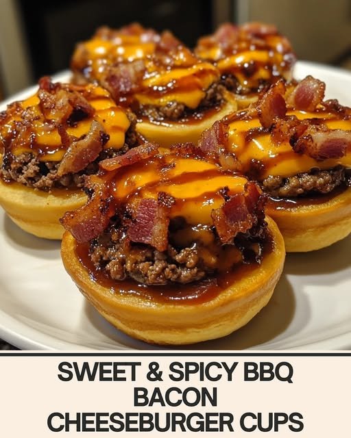 Get ready to indulge in a delightful twist on the classic cheeseburger with these Sweet & Spicy BBQ Bacon Cheeseburger Cups! Perfect for parties, game days, or a fun family dinner, these bite-sized treats combine the savory goodness of ground beef, crispy bacon, and melted cheddar cheese, all nestled in a flaky biscuit crust. The addition of barbecue sauce and a sweet glaze makes these cups irresistibly delicious, while optional jalapeños add a spicy kick for those who dare. These cheeseburger cups are sure to be a hit with everyone!