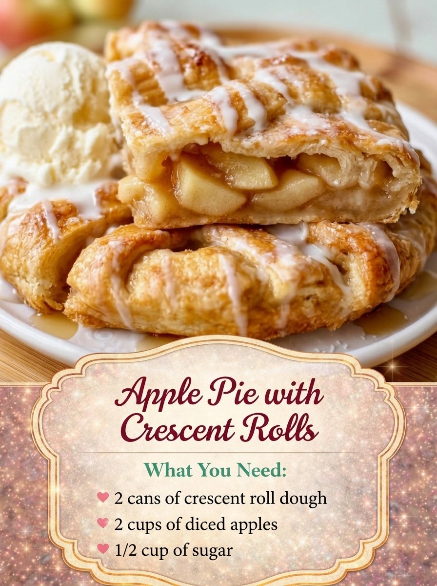 • Description: A warm, flaky shortcut dessert made with crescent roll dough, tender cinnamon apples, and a buttery sweet finish that brings all the cozy flavor of apple pie with far less work.
