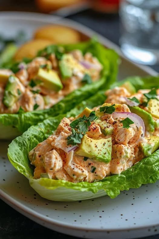 4. Serve: Spoon the freshly prepared Avocado Chicken Salad into the cold, crisp lettuce cups. Serve immediately and enjoy your light, refreshing, and delicious meal!