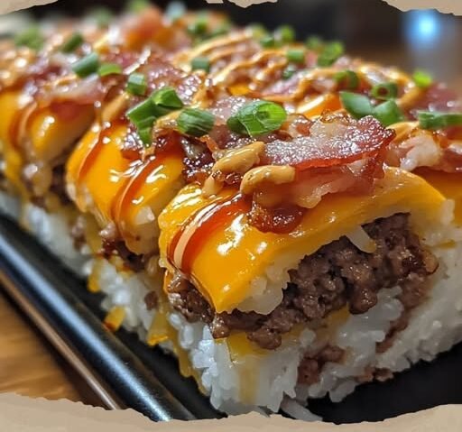 Get ready to have your mind (and taste buds!) blown with a dish that brilliantly fuses two culinary worlds: the comforting flavors of a classic bacon cheeseburger and the intriguing elegance of a sushi bake. This Bacon Burger Sushi Bake is truly a one-of-a-kind creation, featuring layers of perfectly seasoned sushi rice, savory ground beef, crispy bacon, melted cheddar cheese, and a delectable umami-rich sauce, all baked to golden perfection. It’s a fun, exciting, and incredibly delicious way to enjoy familiar flavors in a brand new format.