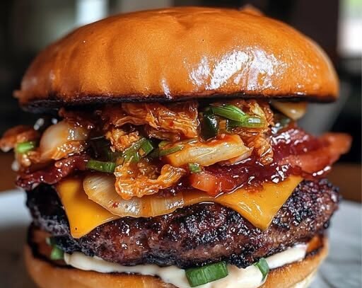 I’ve made a lot of burgers in my day, but this one hits that perfect balance of smoky, sweet, and savory. It’s like taking the best of Korean BBQ and fusing it with a juicy American classic. The sesame and soy marinade infuses the beef patties with incredible flavor, while the bacon adds crunch and smoky depth. Melted cheese and fresh lettuce round it all out—no boring burgers here.