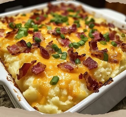 The Bacon-Loaded Cheesy Mashed Potato Bake is more than just a side dish; it’s a celebration of classic comfort food done right. It’s rich, flavorful, easy to make, and always a crowd-pleaser. Prepare to enjoy the ultimate creamy, cheesy, bacony indulgence that will have everyone asking for seconds!