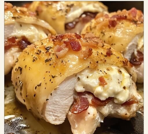 Each bite is loaded with melty cheddar and mozzarella, crispy bacon, and tangy ranch dressing, all wrapped inside tender, perfectly seasoned chicken breasts. Whether you’re cooking for a weeknight dinner, family gathering, or meal prep, this dish is guaranteed to impress!