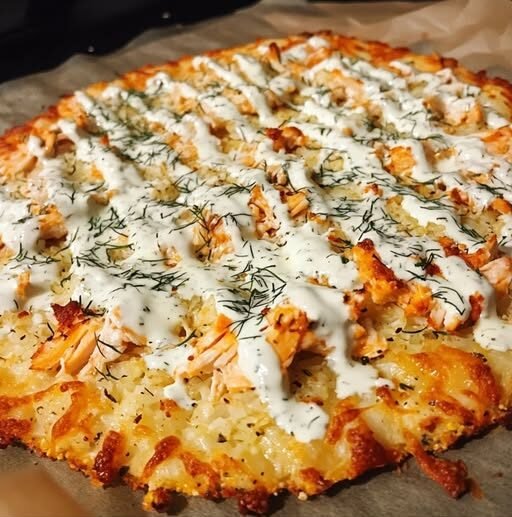 This Baked Cauliflower Crust Pizza with Buffalo Chicken & Dill Ranch Drizzle proves that clean eating doesn’t mean boring eating. With crispy edges, spicy chicken, and a cooling drizzle of herbed ranch, it’s a balanced, satisfying twist on classic pizza that’s perfect for any night of the week.