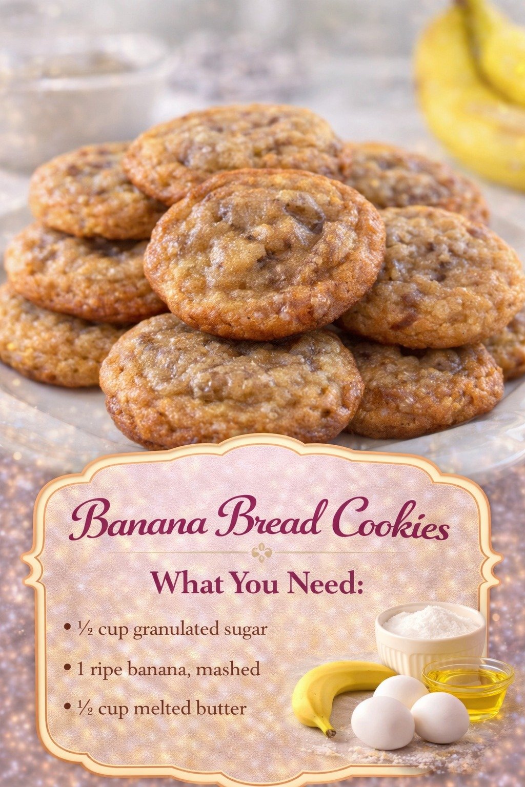 I love this recipe because it gives you the best of two worlds. You get the nostalgic flavor of banana bread with the fun, portable shape of a cookie. They feel casual enough for everyday baking, but they’re also special enough to bring to a get-together or include on a dessert tray.
