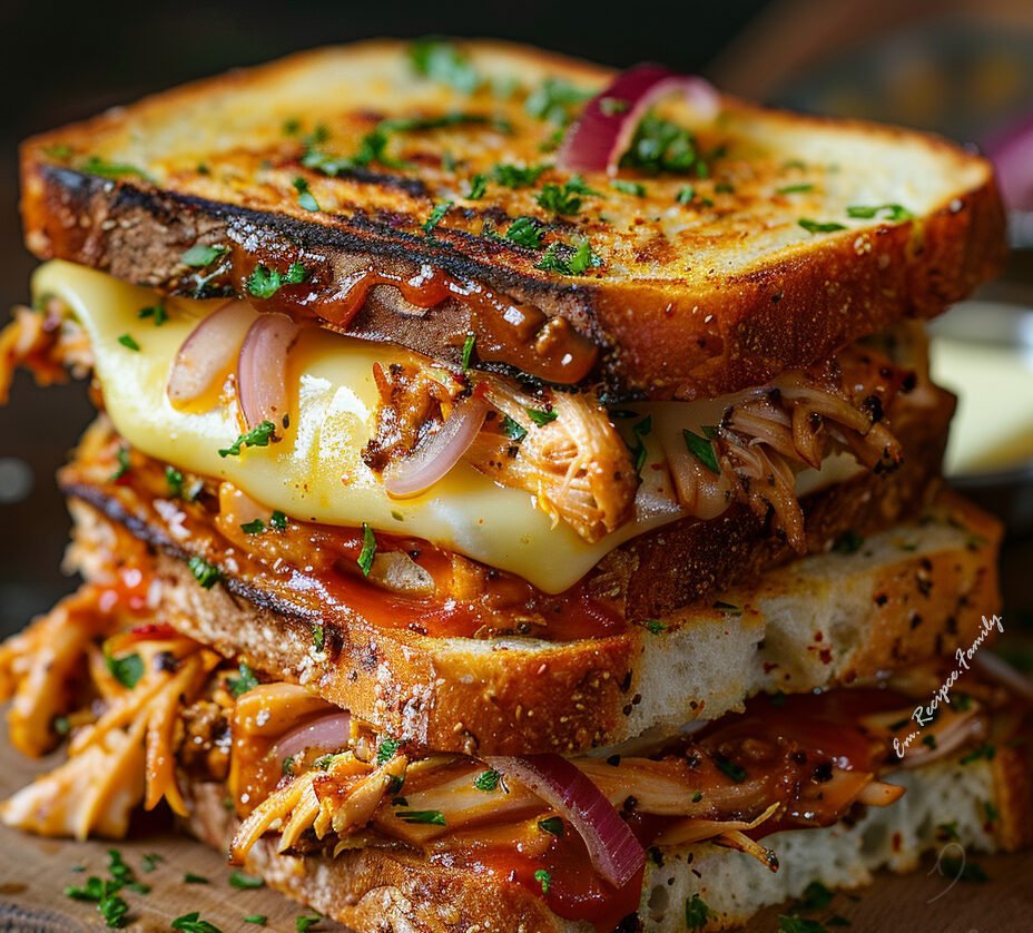 I’m a huge believer in elevating classic comfort foods with simple, impactful twists, and this BBQ Chicken Grilled Cheese is a shining example. What I absolutely adore about this recipe is how it combines so many satisfying elements. The shredded BBQ chicken is the star, packed with smoky, sweet, and tangy flavors. The thinly sliced red onion and garlic add a wonderful aromatic depth. But the real magic happens when all of that is layered with creamy, melty Havarti cheese and sandwiched between slices of garlic butter-infused sourdough bread, grilled to a perfect golden crisp. It’s a symphony of textures and tastes: savory, sweet, smoky, cheesy, and crunchy. It feels incredibly gourmet yet comes together so easily, especially using pre-cooked chicken. It’s a total game-changer for grilled cheese lovers!