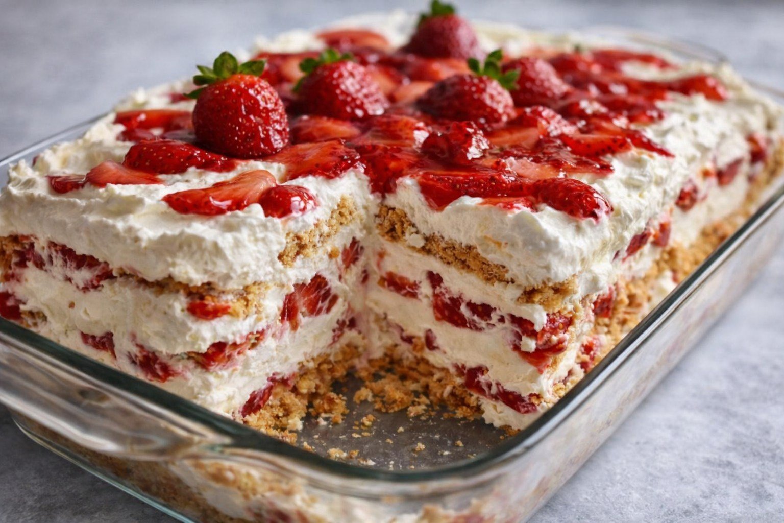 By layering crisp graham crackers with a velvety cream cheese filling and macerated strawberries, you create a dessert that slices like a traditional cake but feels like a cloud. It’s the kind of recipe that makes people think you spent hours in the kitchen, when in reality, the refrigerator did all the heavy lifting.