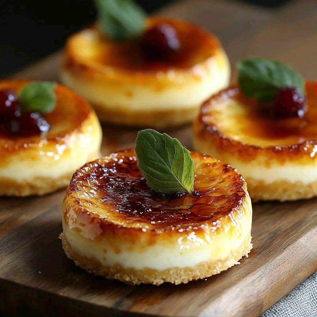 Bite-Sized Crème Brûlée Cheesecakes with Caramelized Sugar Tops