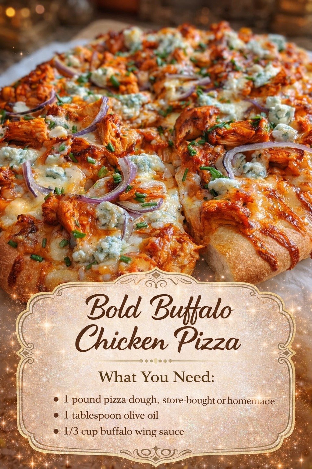 Bold Buffalo Chicken Pizza is perfect for game day, casual entertaining, or any dinner where you want something hearty and fun. It pairs well with crisp celery sticks, a simple salad, fries, or extra dipping sauce on the side.