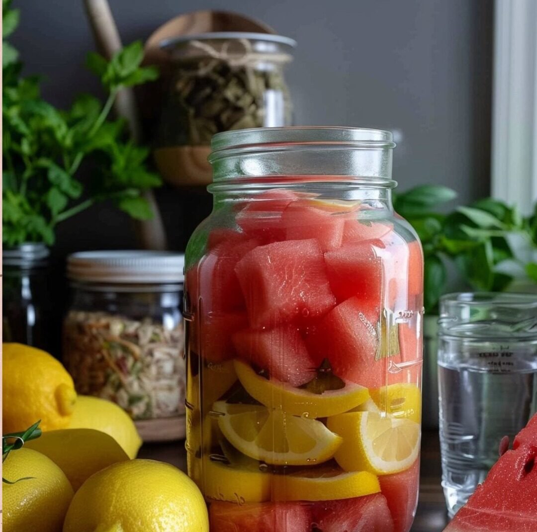 - Watermelon (enough to fill a quart-sized jar, after rind is removed and cubed)
