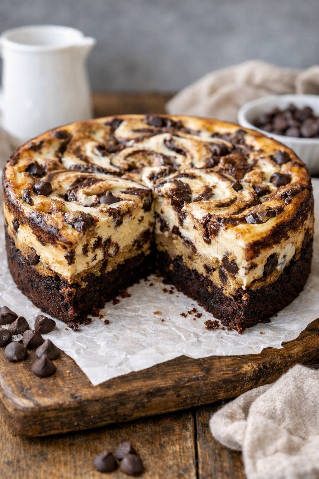 If you’ve ever struggled to decide between brownies, chocolate chip cookies, or cheesecake — this recipe is your answer. This Brookie Swirl Cheesecake Cake combines three iconic desserts into one layered masterpiece.