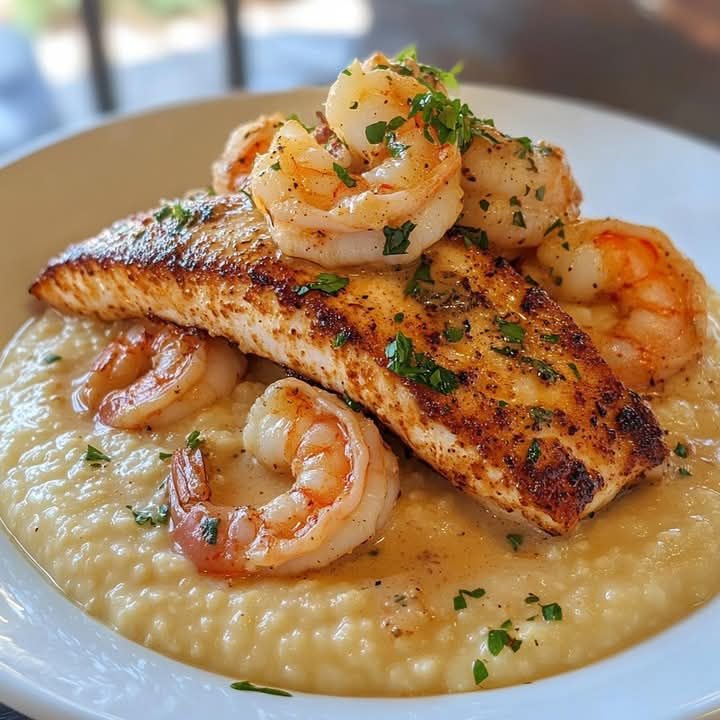 Cajun Red Snapper and Shrimp Over Creamy Grits: A Southern Seafood Masterpiece
