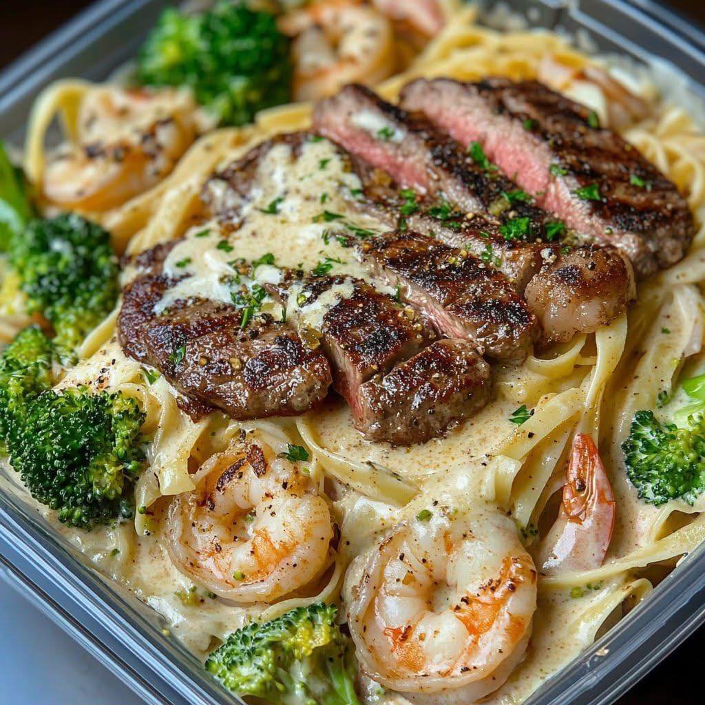 If you’re craving the ultimate comfort meal with bold flavor and luxurious creaminess, look no further than this Creamy Cajun Steak & Shrimp Fettuccine Alfredo. It’s everything you love about surf and turf—juicy steak, succulent shrimp—brought together with fettuccine pasta and a velvety homemade Alfredo sauce.