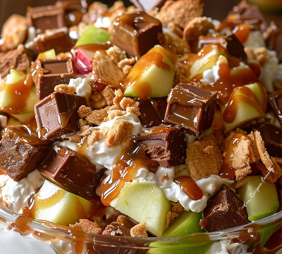 Get ready for a dessert salad that’s so addictive, it might just disappear before you even get a spoonful! This Caramel Apple Snickers Salad is a delightful blend of crisp, fresh apples, chewy chopped Snickers candy bars, all coated in a creamy vanilla pudding and whipped topping base, and finished with a luscious drizzle of caramel sauce. It’s a sweet, salty, and crunchy explosion of flavor that’s perfect for parties, potlucks, or any time you need a fun, no-bake dessert!
