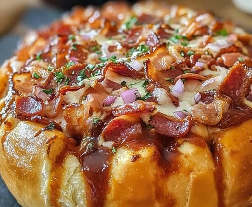 This BBQ Bacon Pizza Bread Bowl is what happens when comfort food and creativity collide. It’s crispy, cheesy, smoky, and just plain fun to eat—and perfect for sharing (if you can resist keeping it all to yourself).