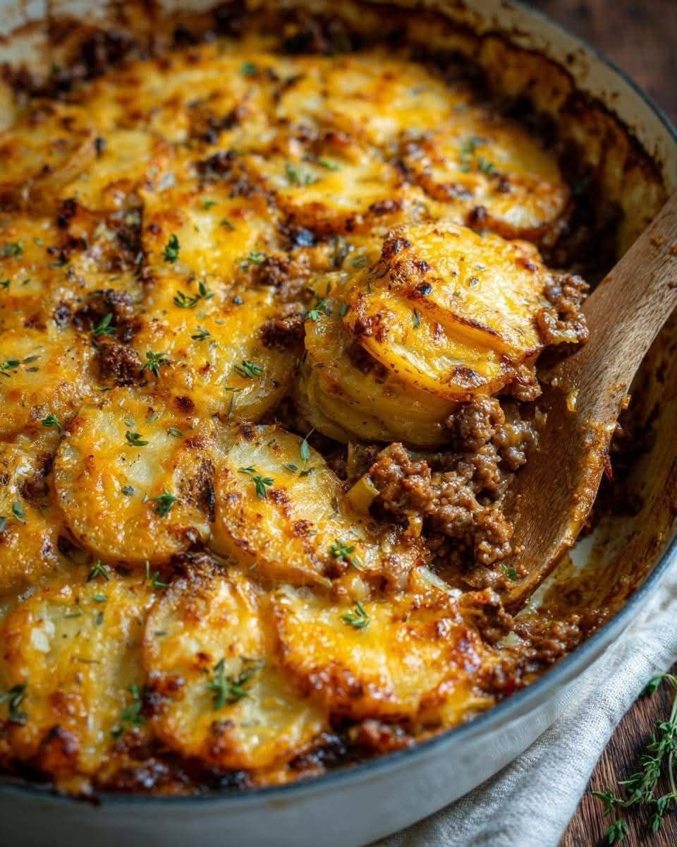 The potatoes absorb the juices from the beef as they bake, becoming incredibly tender, while the cheese creates a golden, crispy crust on top that everyone fights over. It’s the kind of meal that makes the whole house smell amazing.