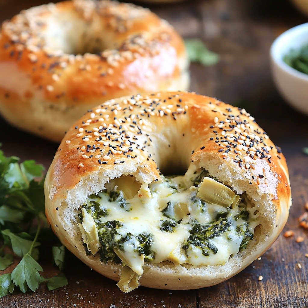 Cheesy Spinach Artichoke Bagels 🧀🌿✨