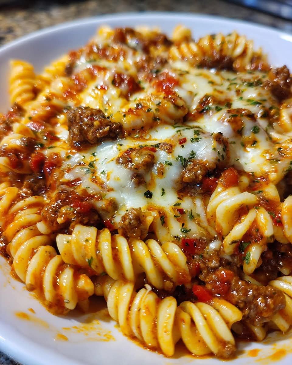It’s also incredibly efficient. Everything comes together in one large skillet after the pasta is cooked, minimizing cleanup. The balance of savory seasoned beef, tangy marinara, and that irresistible cheesy sauce makes for a dish that’s both familiar and exciting. It’s the kind of meal that appeals to everyone, from picky eaters to comfort food connoisseurs, and it’s guaranteed to disappear from the table in record time!