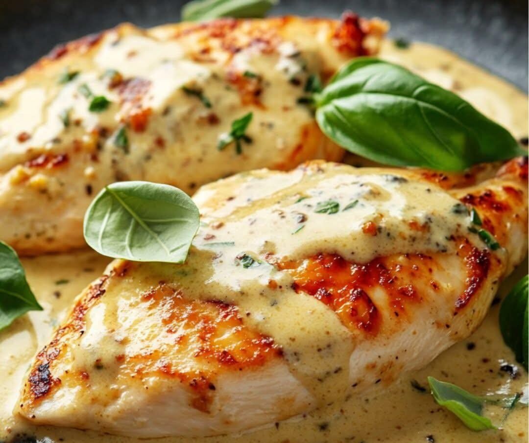 Pan-seared chicken breasts are bathed in a rich cream sauce infused with garlic, Parmesan, and basil. Serve it over pasta, rice, or roasted veggies, and you’ve got the kind of meal that turns a regular evening into something memorable.