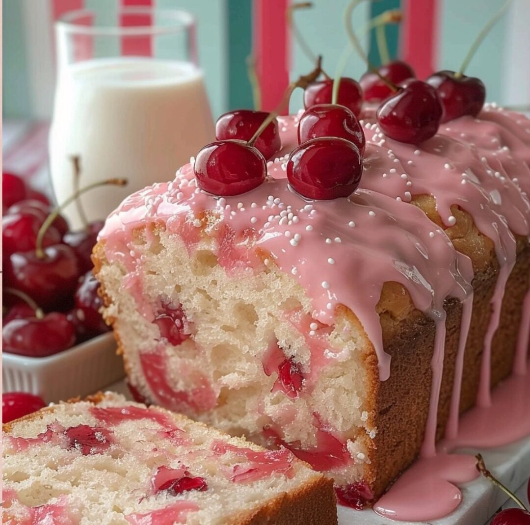 Few things say “summer comfort” like a moist slice of Classic Cherry Bread—bursting with vibrant maraschino cherries and topped with a pink almond-vanilla glaze. It’s bright, buttery, and just sweet enough to feel like a treat without being over the top. Perfect for brunch, dessert, or just-because snacking.