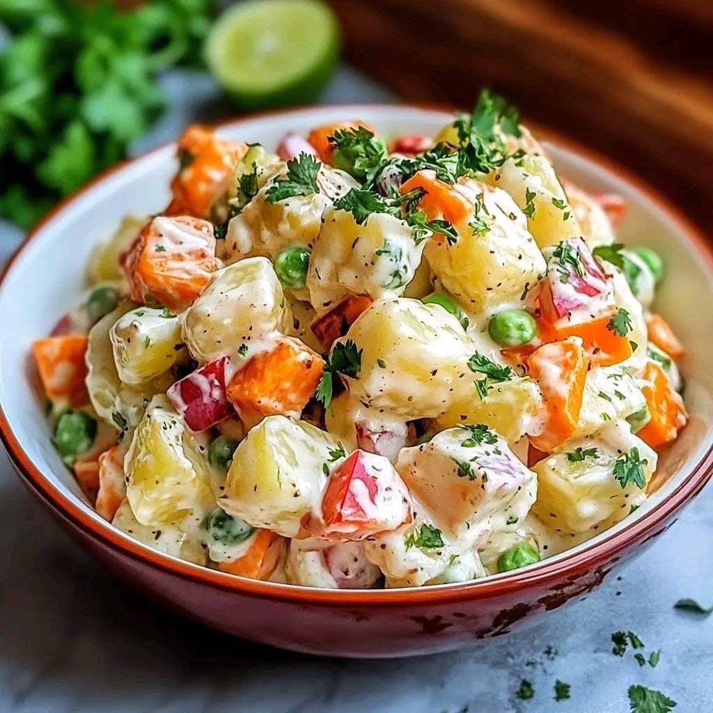 Ensalada Rusa is a classic potato salad with roots in Russia but adopted and adapted across Latin America—especially in Colombia. This Colombian-style version is rich, creamy, and packed with fresh vegetables, herbs, and a hint of citrus. It’s the perfect side dish for grilled meats, BBQs, holidays, and more.