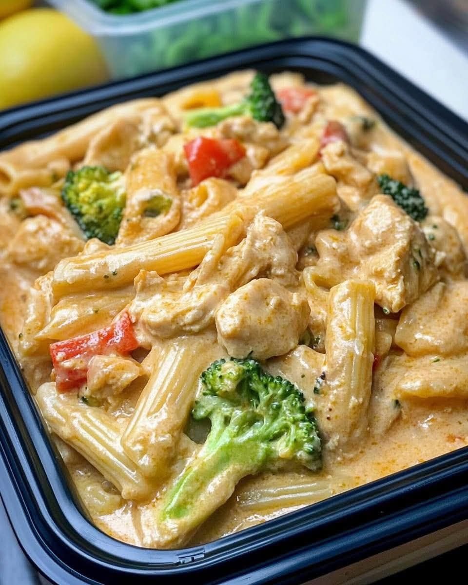 Creamy Chicken and Veggie Pasta with a Savory Garlic Sauce