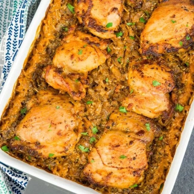 The best part? It’s a true one-pan meal! Just mix everything together, nestle in the chicken, and let the oven do the work. No extra pots or pans, no complicated steps—just pure comfort food made with pantry staples.