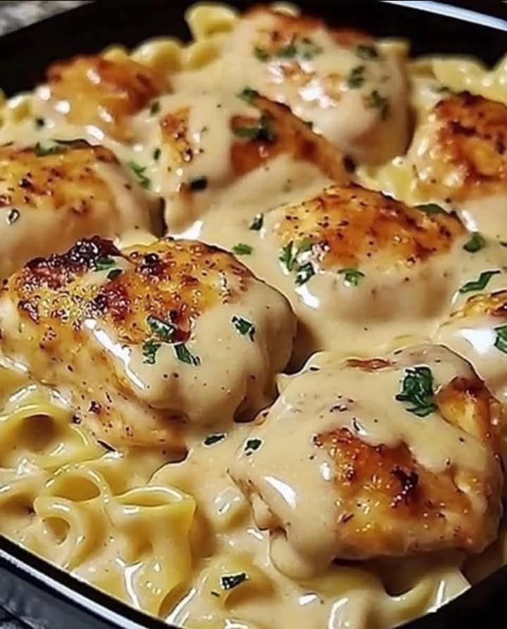 Creamy Garlic Chicken with Egg Noodles – Quick, Easy, and Delicious