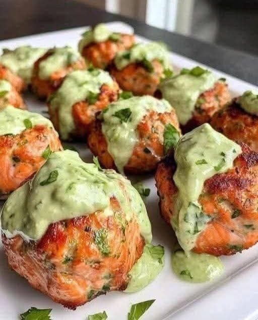 Crispy Baked Salmon Meatballs with Creamy Avocado Sauce (Easy & Healthy!)