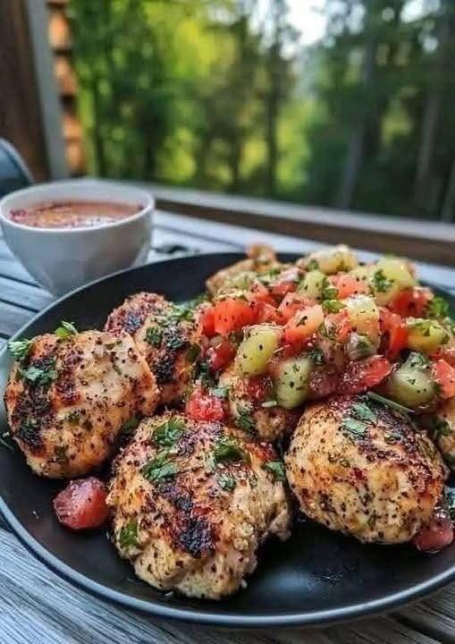 Garlic Cilantro Chicken Bites with Strawberry Kiwi Salsa – Juicy, Bright & Summery