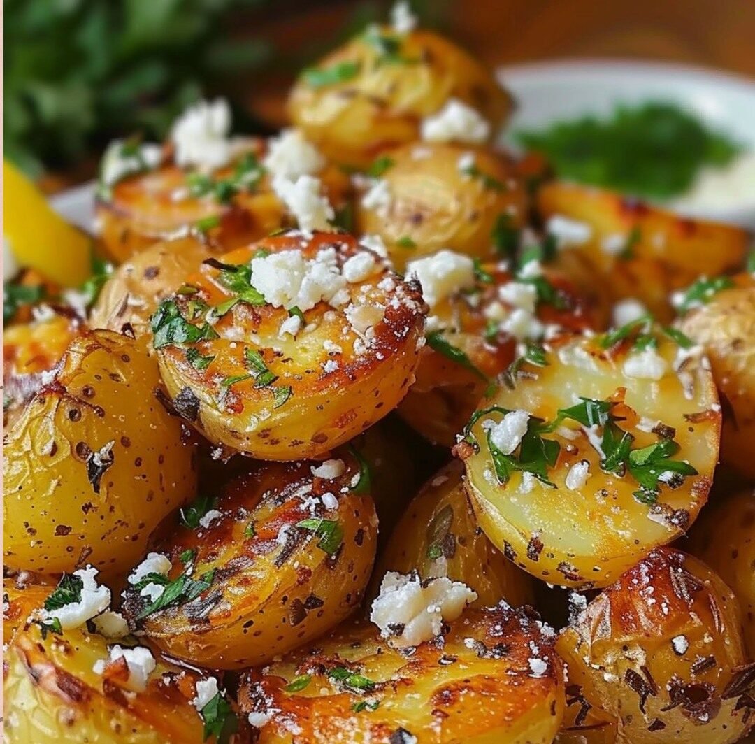 Crispy Greek Lemon Potatoes with Feta: A Zesty Side Dish
