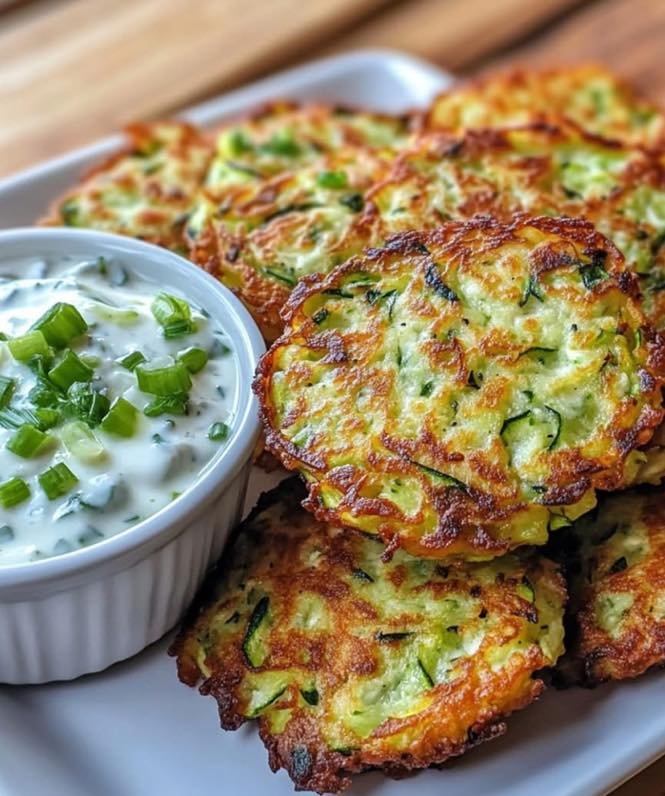 Zucchini & Feta Fritters with Creamy Cucumber Yogurt Dip 🥒