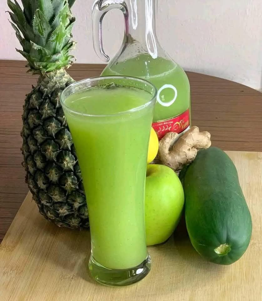 This is the kind of homemade juice that works well in the morning, as an afternoon refresher, or alongside a light lunch when you want something fresh and easy. The pineapple and apple juices bring natural sweetness, the cucumber keeps it cool and clean-tasting, and the ginger and mint add a lively finish that makes the whole drink feel extra invigorating.