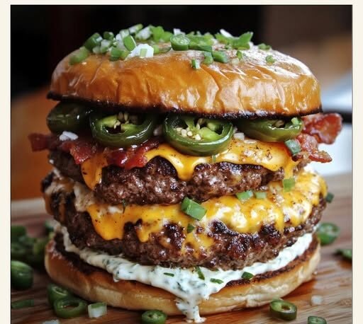 When a jalapeño popper crashes into a juicy double smash burger, magic happens. This Double-Decker Jalapeño Popper Smash Burger with Ranch Drizzle takes everything you love about burgers and spicy bar snacks and stacks it high—literally. We’re talking crispy bacon, melty cream cheese, fiery jalapeños, and tangy ranch, all sandwiched between a double layer of seasoned beef and a toasted bun.