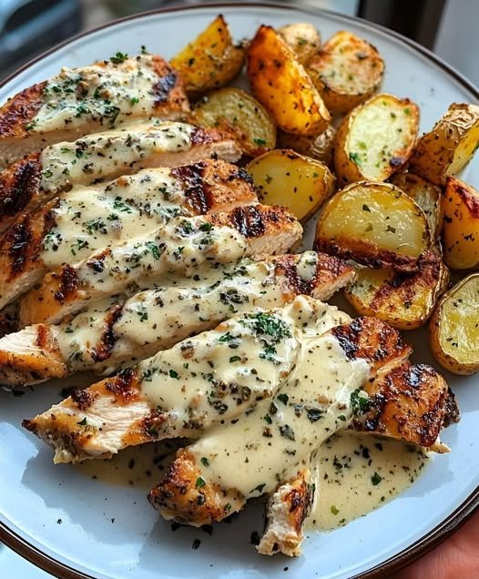 Prepare for an extraordinary culinary journey right in your own kitchen with this deeply indulgent and aromatic dish: Double Parmesan Garlic Chicken Alfredo with Crispy Potatoes & Creamy Truffle Mushroom Pesto! This recipe is a true celebration of gourmet comfort, featuring tender, Parmesan-crusted grilled chicken slices and perfectly crispy double garlic-Parmesan roasted potatoes. Everything is sumptuously coated in an ultra-rich, velvety creamy truffle mushroom pesto Alfredo sauce, exquisitely finished with delicate shaved Parmesan. It’s a meal that promises an unforgettable symphony of flavors and textures, perfect for a special occasion or when you truly want to treat yourself.