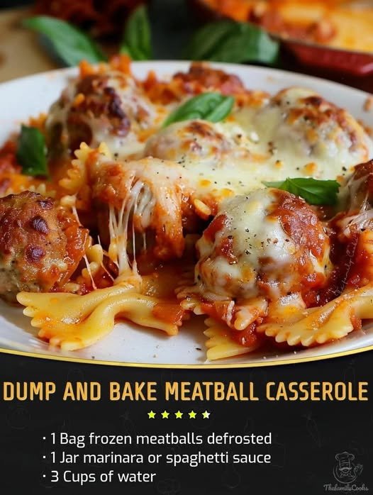 There’s no browning, sautéing, or babysitting—just dump it all in, bake it, and enjoy a hearty, saucy dish loaded with tender pasta, juicy meatballs, and melted cheese. It’s the kind of recipe that busy parents, new cooks, and weeknight warriors will come back to again and again.