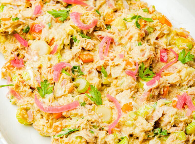 • Tuna: Canned tuna packed in water is a great choice because it’s lighter in flavor. You can also use tuna packed in olive oil for a richer taste.