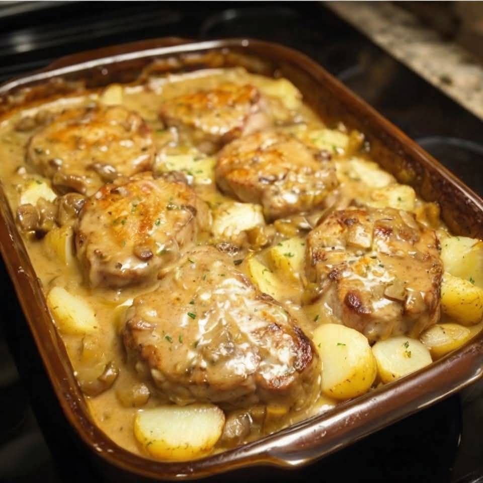 I’m a huge fan of meals that are both incredibly delicious and wonderfully convenient. This recipe perfectly embodies that philosophy. What I love most is how the flavors are built in layers. Searing the pork chops first not only gives them a beautiful brown crust but also creates a flavorful foundation in the pan for the gravy. As the dish bakes, the pork becomes incredibly tender, the potatoes soften to perfection, and the creamy gravy bubbles and reduces, infusing every component with its rich, savory taste. It’s a complete meal all in one dish, which makes it a dream for busy weeknights when you want to serve something hearty and homemade without a lot of fuss.