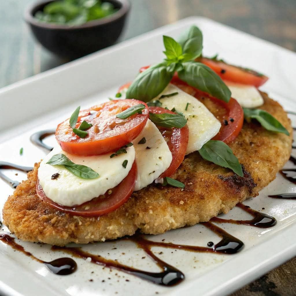 - Assemble and Serve: Place the hot chicken cutlets on a serving plate. Spoon a generous amount of the fresh Caprese mixture over the top of each cutlet. Finish by drizzling with balsamic glaze.