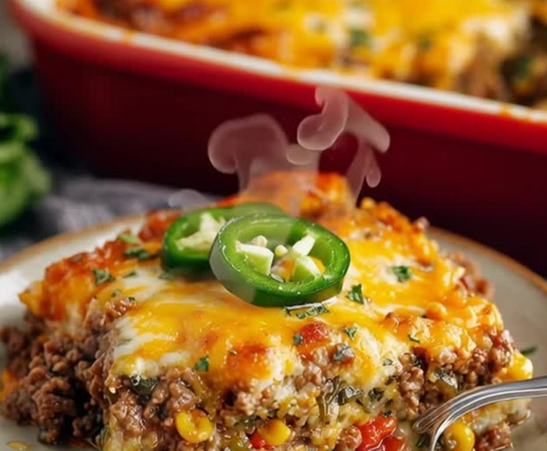 It takes everything you love about the original—the tender green chiles, the savory ground beef filling, and the blanket of melted cheese—and bakes it into a single, effortless casserole. No frying, no messy batter, just easy assembly and incredible flavor. It’s spicy, it’s cheesy, and it’s a total family-friendly win that’s always guaranteed to disappear. If you love big, bold, comforting meals, this is your new go-to.